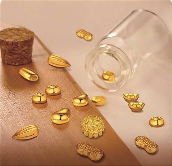你都咪话年轻人唔会存钱,只是可能中意买金呢种更有质感嘅方式。作为年轻嘅打工人,唔一定下下要买投资金条,而係先会从小克重嘅小金豆入手,小金豆嘅重量轻至1克以下,只需要几百元就可以上车做“金主”。呢啲小金豆款式丰富,有金瓜子、金爱心、金元宝等造型,入手后可以用小玻璃樽慢慢存,储够一定数量仲可以自由组合成手串或者项链,好直观咁见证自己理财嘅成果。有啲品牌洞察咗消费者嘅小心思,将投资金条嘅造型搞啲花臣,只要加编绳就可以成为手链或者项链,呢种投资类金品一般会免去手工费,价格按国际金价走,无需多余消费,轻轻松松get闪炩炩嘅金饰。