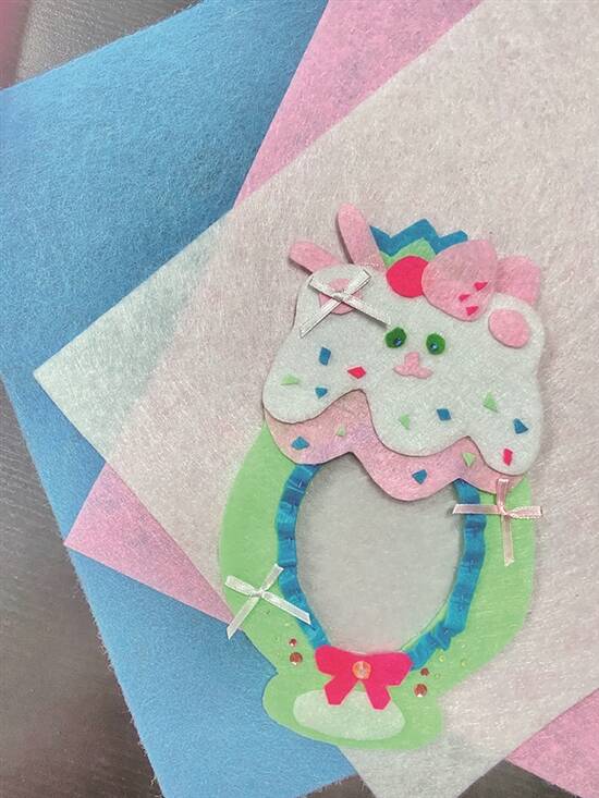清爽的薄荷草莓冰沙、裹满酱汁的布丁船、点缀着红色草莓的抹茶蛋糕……睇起身咁美味嘅甜品,谁能不爱?所以,好多人都围绕这个主题来制作各种各样的不织布手工,把呢份舌尖上嘅美味变成养眼之物。制作成“甜品”相框或卡套,可以放idol或者同朋友合影嘅照片,除了作为日常的一种装饰,打卡景点、餐厅的时候,仲可以用来做凹造型嘅道具,超级出片!不织布“甜品”卡套的细节可以很丰富,就算和甜品本尊放在一起,佢都丝毫不逊色,饱腹感同幸福感同时up!