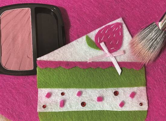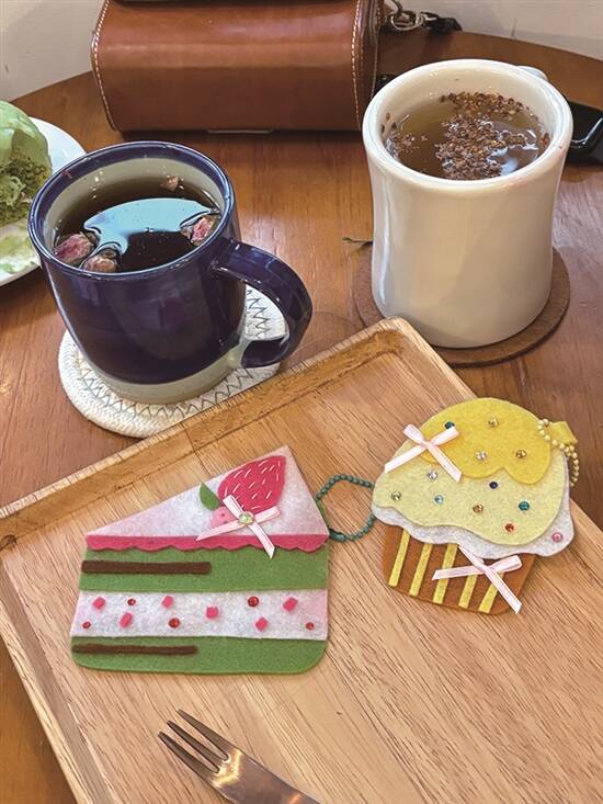 甜品主题的不织布挂件,之所以更受欢迎,是因为佢嘅应用场景更加广泛。制作起来又超简单,层层叠叠堆砌多几层都好容易handle,对图纸的设计、剪裁的手艺,要求都没有这么高,有时候随心所欲的裁剪,还会有惊喜的效果。制作手作图纸的时候,关键是要拟出食物的特点,香气四溢的奶油花边只需要几条波浪线的走势就能表达;用针线缝出草莓的纹理,水钻折射糖霜的甜度,借一点少女腮红刷上的颜色,成品就会变得“更好吃”!制作过程好似在烘培和点缀真正的甜点,充满仪式感,相当治愈。