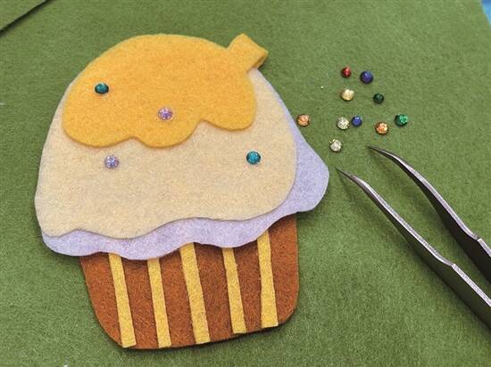 5.用镊子增加小块的不织布,丰富细节;用水钻和小蝴蝶结进行装饰,增加质感。
