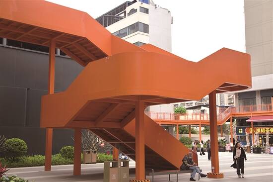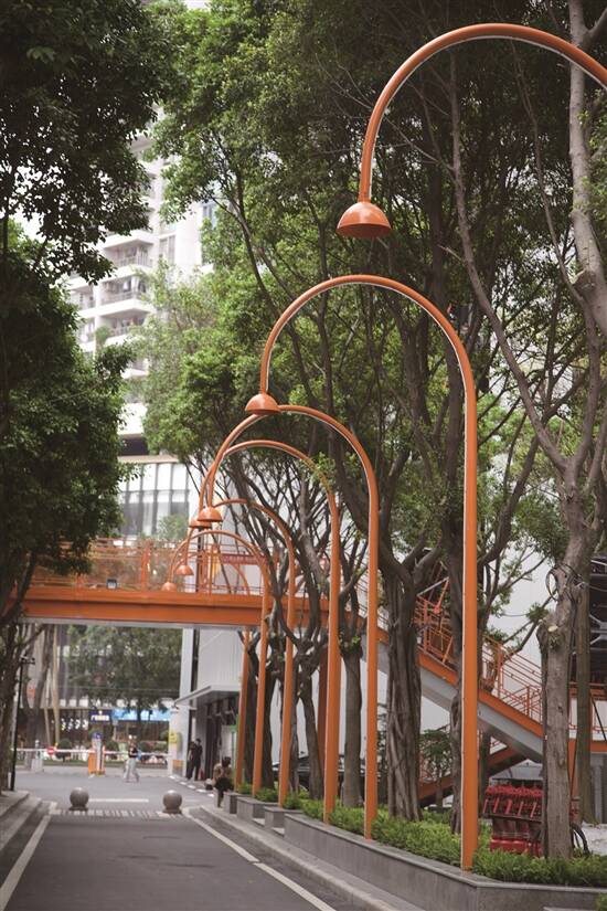 从陈家祠地铁站A口出来,活力嘅“1906科技园”实会吸引你嘅眼球!呢度係广州中烟卷烟二厂,1949年由爱国华侨实业家简姓兄弟创办,兴盛时期,广东六大名烟都喺度生产,后来历经更名、迁址,呢度嘅旧址只剩低围墙同厂房。到咗依家,呢片藏喺市区嘅天地重焕生机,工业风建筑刷上张扬温暖嘅橙色,摇身一变成为充满朝气嘅潮玩新地标。步入露天式街区,有几处“橙色打卡点”千祈唔好错过,比如横跨中央广场上空嘅时空连廊、千米长“爱玛仕橙”漫步连廊、南广场几何感十足嘅橙色楼梯,行走喺chill爆嘅橙色空间,会令人感到充满活力。