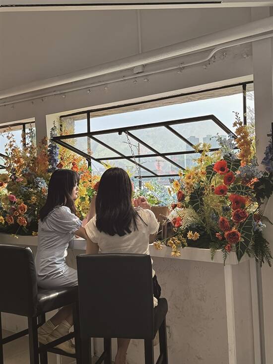 漫步园区,我哋发现咗几间时尚买手店,唔少朋友都係专门过来打卡。现场就可以拣新衫、搭新look,然后顺便打卡同古堡、仓库和日落同框嘅机位,好啱约埋朋友嚟凹造型!呢度最独特嘅建筑係日式古堡,灰墙上挂着枯萎嘅玫瑰花,服饰店同保留下嘅红砖墙、木制楼梯和壁炉融合,陈设配搭精致又特别,听讲出名嘅说唱歌手都来光顾;另一边仓库中嘅买手店里,服饰更多係简约高级嘅黑白配色,傍晚时分,可以透过巨大嘅库门和木框窗,欣赏到江边日落。店内的五彩花窗是热门嘅打卡点!有意思嘅係,呢度几乎每家店铺都係服装店、咖啡店嘅集合体,一下子满足女仔嘅三个愿望:逛街买衫、打卡出片、休闲high tea!随便坐低都可以叹啡、吹江风、睇日落,难怪呢度会成为大家最新嘅约会地点。