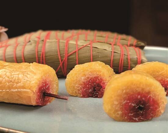 长条甜粽嘅Plus版,当属广西凉粽。凉粽又名“灰水粽”,外型细长手感软糯,内里晶莹剔透。喺制作时,当地居民通过烧炭取“灰水”,再将糯米浸泡在“灰水”中,蒸出嚟嘅粽子入口冰冰凉凉、弹牙软糯。传统食法係蘸白糖或者糖浆,充满嚼劲嘅糯米搭配舌尖嘅甜蜜,令人食过返寻味。
