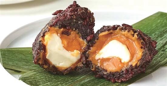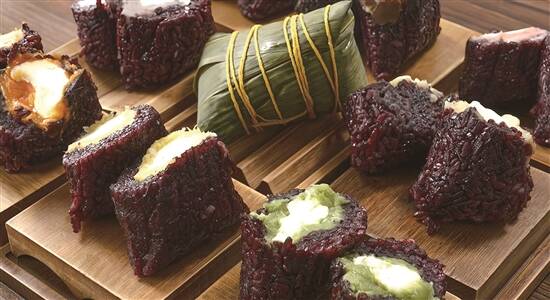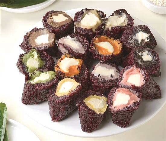 网上大热嘅奶酪粽,外观色彩缤纷,口味亦相当丰富:绿色抹茶、紫色芋泥、黄色奶黄……用血糯米将唔同口味嘅馅包裹住,中间再夹一块超大嘅咸甜奶酪,一啖落口,甘甜Q弹嘅血糯米与浓郁香醇嘅奶酪喺口腔相融,冲击味蕾,如果摆入雪柜冷藏下,入口会更加冰凉丝滑。