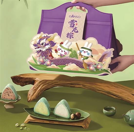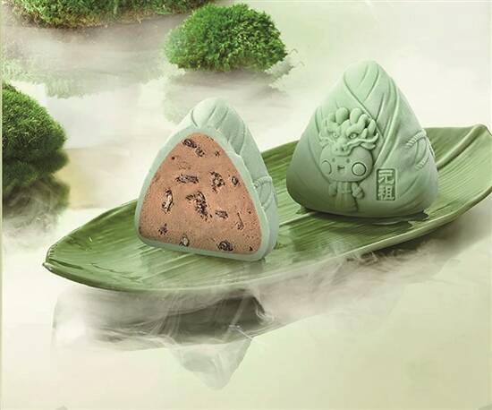 为咗贴合翻今年龙年嘅属性,元祖推出“雪龙粽”,品牌专属IP“龙年脱兔”印喺粽上,造型得意盏鬼,望见都唔舍得食落口。慕斯质地嘅绿色外皮溢满奶香,包裹住味道浓郁嘅冰淇淋,入口丝滑醇香,甜到心尖。