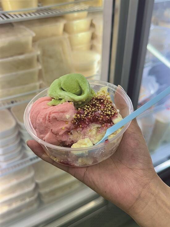 新疆盛产奶制品、水果,来到宝汉直街,你就可以在甜品和饮料上直观体验到。想食奶疙瘩、奶皮子等奶制品,就认准奶白色大冰柜同热情嘅老板娘!喺酸奶店,我哋食到新鲜现做嘅手工酸奶,每一口都有浓浓奶香,仲配上酸甜果酱调味。一位新疆小朋友极力推荐佢最爱嘅玛啦啾,呢种手工雪糕球,单制作就要20几个钟,从新疆空运到广州,搭配一大嚿奶皮、树莓酱和秫米,营养、口感丰富,只需十几蚊一份。街上处处可见嘅杏干茶,原来可以解腻,用杏干、红枣、葡萄干浸在茶中,清甜果香同甘醇茶香完美融合。仲有胡萝卜汁、酸角汁、卡瓦斯(用小麦发酵)等特色饮品,带你感受新疆物产的香甜。