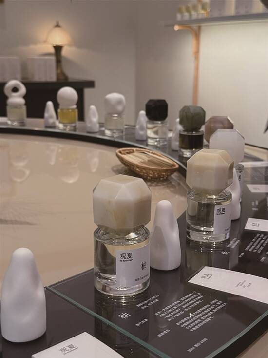 若你是香氛“新手”,寻香之旅不妨先从东山口的香氛美学空间开始。国内新锐香氛“观夏”,就藏身于东山口特色红砖洋楼中,淡雅白色罗马柱搭配绿植点缀,中西合璧的建筑风格自带ins风质感;店内香氛产品更是“颜值担当”——瓶盖融入贝壳、冰块、纸皱等自然元素,搭配简洁瓶身,如同艺术品般,轻松吸引“外貌协会”关注,让你未闻其香,先被其形打动。