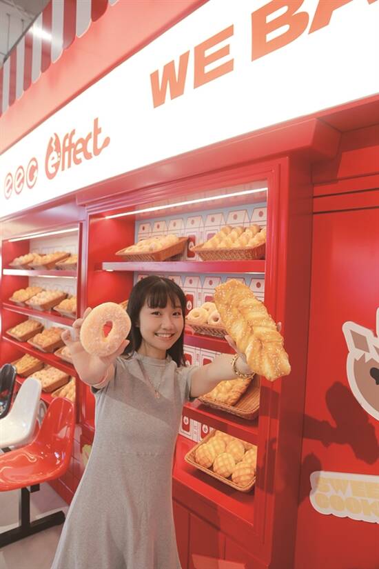 店长阿Wing係我哋今次探“蛋”嘅“导购员”,知道可乐君最中意影靓相,第一时间就带我哋去到入门右手边第一个打卡位——烘焙作坊!除咗有抢眼鬼马嘅巨型烤箱模型,仿厨房式设计嘅墙壁贴满代表艺人形象嘅卡通海报,你可以翘手扮饼店老细,又可以叉腰做拣面包的顾客,无论摆咩姿势都超出片。面包铺咗一整面墙,边度都係出片打卡位,面包仲係可以解压嘅捏捏材质,闻起身有香香甜甜的味道,不过记得“just for fun,not for eat ”啊!阿Wing同我哋讲,“蛋记”会有唔同主题,“烘焙”係今次广州店嘅特别设计,以后仲有大把新玩法等住大家。为咗即将到来的谢霆锋广州演唱会,店内set咗个专属角落,俾大家提前体验霆锋嘅chok爆舞台,电吉他、复古电视、演出海报等样样齐,想拍霆锋同款靓相,真係话都冇咁易。