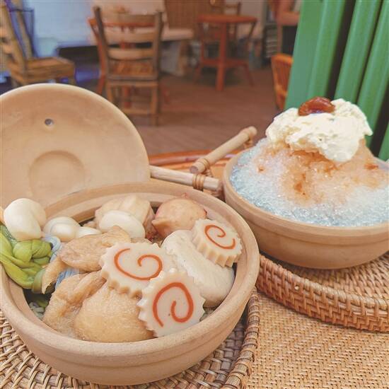 老广讲起砂煲,实係拎去整煲仔饭,或者猛火急攻啫啫万物;提及茶杯、蒸笼,脑海中浮现嘅就梗係茶楼标配,一盅两件。不过最近,竟然有食肆专门拆散嗮呢啲“官配”,用砂煲装冰沙,用蒸笼装雪糕,呢啲不走寻常路嘅“混搭CP”会有乜惊喜?Color同你一齐去睇睇! 陈祉伶/文 秦丽莹/图 万物可砂煲 出品有“潮”味 无论係咸口煮物,定係甜口冰沙,喺“煲林D煮物屋”呢度,都选择用老广味十足嘅砂煲作为器皿!点解谂到啲咁有创意嘅煮法?主理人melon同阿lam就笑称,佢哋原本只係为咗“清库存”。佢哋经营嘅“酒瘾咖啡”,此前推出过一款网红单品“煲仔提拉米苏”,唔少食客都表示好中意,于是开呢家新店嘅时候,干脆用呢种器皿做主题。除咗嗰煲好睇得,佢哋嘅出品都几得意噶。主理人来自潮汕,出品自带潮汕风味。例如会在汤底会加入金不换同水果,增加煮物嘅风味,辣椒酱都係自己特别调制嘅;潮汕盛产青梅,潮汕人家厨房里都有一瓶酸咸梅,店里有个招牌产品“潮汕梅子冰沙”,堆成小山的刨冰下有足料糖水,上有酸酸甜甜嘅梅子酱奶油,混合陈皮姜、话梅肉碎,口感同味道十分有层次。 怀旧中充满烟火气 “煲林D煮物屋”虽然喺开在潮人汇聚的东山口,但四处都充满一种怀旧气息。复古的绿漆推拉门、老式藤条小桌椅、挂在墙上的红色手写餐牌,让人仿佛回到儿时放学后会光顾的小食档。Melon、阿lam都多次强调,其实佢哋一路都唔係想做网红嘢。附近食肆唔多,开呢间店原本都係想咖啡店员工唔使捱外卖,解决员工餐之余,也希望附近街坊路过时,有个地方可以医肚。所以,店里出品主要走亲民路线,不想同街坊有距离感。在记者探店期间,店里客人络绎不绝,除咗有专程嚟打卡的后生仔女,也有唔少上年纪嘅叔叔阿姨入嚟食面,仲有爸爸带住落课嘅囡囡嚟觅食。 煲林D煮物屋 地址:越秀区东华东路市场北街7号 营业时间:周一至周日 12:00-19:30 甜品店茶楼feel 一盅两件 打包带走 “一盅两件”唔止茶楼有,雪糕店都有啵!开在永庆坊嘅“also cab.雪糕店”,主打嘅招牌产品“小笼包”就係用蒸笼装雪糕。任选口味的雪糕球放在洒满椰蓉的甜甜圈上,再装入特别定制嘅可爱蒸笼里,造型中西结合,十分过瘾。另一款热卖产品“功夫豆腐”,则係用功夫茶杯装雪糕加豆腐状的椰子冻,表面铺上满满一层椰子脆片,软嫩同香脆在口腔里打“组合拳”,唔中意太甜嘅朋友仔,仲可以淋上咖啡液搭配食用。店内的雪糕有分意式冰淇淋Gelato同雪葩,从size到口味都可以自由搭配,单球、双球、糯米糍Gelato嘅容器造型都唔一样,各有各的可爱。顾客仲有个“福利”,所有容器都可以带走哦! 西关风情 搭配温馨 “also cab.”的主理人之一橙先生係土生土长嘅广州人,据佢介绍,“also cab.”係由湛江开到嚟广州嘅。而广州分店选择喺恩宁路,係因为佢对呢个自细长大的地方特别有感情。作为一间开在骑楼下的雪糕店,装修风格保留咗西关味道,门口的趟栊门就好有西关风情。行入店内,主理人原创的可爱logo人仔随处可见,空间虽小,搭配温馨,来小坐会十分舒心。听讲,9月中旬,“also cab.”会有同东山口嘅咖啡店推出联名新品雪糕,大家又有新嘢试了! also cab. 地址:荔湾区恩宁路204号 营业时间:周一至周日 12:00-20:00