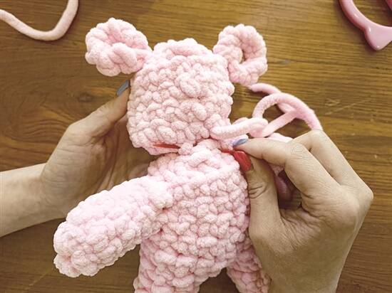 天气渐渐回暖,之前为咗织“温暖牌”颈巾,储落的毛线好多未用完,可以点办?Color手作坊又开班授课啦,同样係织“温暖牌”,但唔一定贴身先暖到你,用冰条线织“熊君”,手感软糯超暖心!线上的教程规则繁琐又复杂,跟我哋学放飞自我的自创手法,先符合潮人定位! 郭玮/文 陈祉伶/图 粗冷唔拮肉 冰条线係大家常用的一种毛线,同普通的线相比,佢睇起身粗壮好多,织完成品特别蓬松、软绵绵,保暖性比幼冷高好多。冰条线虽然粗,但佢表面质地软滑,成品佩戴起来唔会拮肉,特别适合做贴颈的围巾,因为佢够蓬松,编织之后亦容易带有弹性,所以做帽、外套都好适合噶。但要提醒大家,冰条线主体由一条线芯加绒毛组成,喺编织过程中会有碎毛绒掉落,织品如果缝隙过紧,穿插过程中可能会捋松绒毛,导致线芯外露,会降低咗织品的颜值。 创意无限多 网上有各种各样冰条线手作DIY教程,大多数会出现好多专业术语,要求我哋跟住固定的制作过程嚟做,例如环形起针、长短针、辫子针等,新手上路的时候就好容易记错步骤,或者係眼睛睇明了,手仔学废咗。可乐君喺多次学习失败后,都有咗自己的心得,“改良”咗一下入门方法:由于冰条线摩擦力强,线线之间融合度高,因此,只要掌握基本的编织手法,大胆落手“勾心斗角”,一样可以打造出专属自己、独一无二的艺术品嘎。正所谓熟能生巧,你要在练习基础手法的时候,捉住编织手法中的奥妙,用自己顺手的方式嚟掌握技巧,就可以随心所欲咁勾出公仔、花、杯垫等好多日常物件,最紧要就是唔好怕出错,放胆去试!最后,根据自己喜欢的手感去填充珍珠棉,好快就可以拥有自己的作品。 放胆尝试123 1 材料 选择自己喜欢的冰条线颜色,适量的珍珠棉,再视乎线的粗细来选购钩针的码数。有选择困难的朋友,亦可以到网购配套好的手工包。 2 起针 毛线在手指绕圈,短端压于长端之上,用图示方式勾线,最终钩针上有一个线圈为一针。 3 编织 重复方法②,每勾取一个线圈,都将佢绕过前一个线圈,钩针上keep住只有一个线圈。 4 填充 小熊的“皮囊”编织至90%时,就可以往里面填充珍珠棉,根据自己的喜好调整松软程度。 5 组装 将头部、躯干等部位,用粗线针缝起来,每个部位连接好后,可将内部填充物捏松、推均匀。 6 细节 可为小熊缝制眼睛、嘴巴等细节部位。 成品