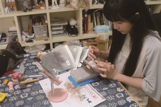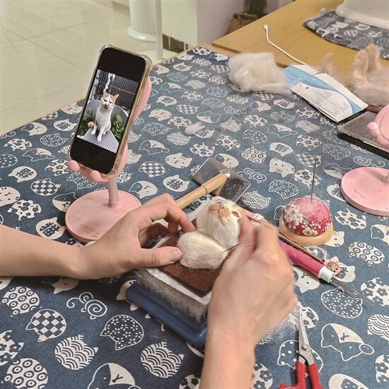 好多人会将宠物视为重要的家人,奈何“天下无不散之宴席”,寿命比较短的宠物,别离会来得猝不及防。广州的一位手作达人CiCi,通过一件件活灵活现的羊毛毡手工作品,“复活”了不少家庭的萌宠,让它们以另一种方式继续陪伴主人。 陈祉伶/文 饶禧、受访者提供/图 为爱宠变身手作人 羊毛毡手工,就係利用羊毛材料制作成各种工艺品,因为用具、制作不算复杂,过程也很解压,近年来受到不少年轻人的热烈追捧。而CiCi最初接触羊毛毡呢门手艺,则係因为她的爱猫“L哥”。当时因为想制作一份专属于“L哥”的礼物,咁啱北京有个羊毛毡手艺人来广州授课,于是她就去报名学习,为“L哥”做出咗一个专属于它的羊毛毡头像。CiCi坦言,呢个羊毛毡处女作,其实有好多瑕疵,但她一直保留至今。这一次尝试亦打开咗CiCi日后新的职业路向,因为对呢门手工艺十分感兴趣,她开始深入研究、精进技艺。随住越来越多客户找她定制,CiCi干脆将兴趣变成职业,专职做羊毛毡。 作品承载治愈力量 如今,CiCi手上的订单已经排到2026年,其中好多客户都係失去爱宠的“铲屎官”。好多时,CiCi不但係一位羊毛毡手艺人,也係一个“树洞”,佢会聆听客人诉说他们和宠物之间的故事。有啲主人更会将宠物的毛发寄给她,CiCi就会把宠物毛发小心处理过后,植入到羊毛毡中,这样“等于让作品有了宠物的灵魂”,羊毛毡作品亦不止係一件手工艺品,而是承载住主人同宠物间回忆的宝贝。CiCi希望用自己的手艺和作品,为那些失去爱宠的主人们带来一些真实的触感和温度,治愈那些来自别离的悲伤。 精雕细琢唯求神似 可塑性极高的羊毛毡手工,其实可以做好多嘢,包括玩偶、首饰、包包等,而CiCi则专攻精制仿真宠物。同普通的羊毛毡手工创作相比,宠物定制类作品的难点,就在于如何做到与宠物本尊神似。CiCi本身十分喜爱动物,自家养了不少猫咪,加上她还去钻研咗很多宠物图鉴书籍,熟悉掌握了不同品类宠物的特征。为咗尽可能地还原宠物,CiCi会不断观察和对比顾客发来的照片,据相片上的宠物特征,找好对应颜色的羊毛和眼珠,一针一针反复精修细节,直至羊毛毡宠物完成时,有栩栩如生的感觉。 初哥入门要有耐心 目前,羊毛毡手工在国内尚算係一个比较新鲜和小众的手工门类。CiCi同可乐君分享道,其实入门并唔难,但最紧要係有耐心。想要制作出高质量的羊毛毡作品,係需要一定艺术功底,以及长时间的学习,不要妄想短期内可以速成。近来,就有不良商家在线上开设一周速成课程,并收取高额学费,不少人上当受骗。对有心学做羊毛毡的初学者,CiCi建议大家最好係找专业的手艺人上实体课,学习比较直观,如手法有错可以及时纠正;或者买一些书籍自己跟住学,也能慢慢摸索出来的。之前,市面上的羊毛毡工具书多数係海外出版的,现在已经有出版社找CiCi合作,出一本属于中国的羊毛毡教程书,里面会有基础的工具介绍、常见的猫狗制作过程,以及兔仔、刺猬等其他制作内容,大家可以期待下。 ①戳出底胚 ②塑造轮廓 ③植入毛发 ④修剪调整 ⑤增添细节 ⑥雏形渐显