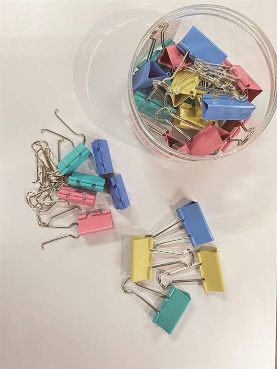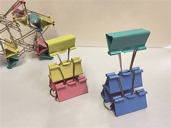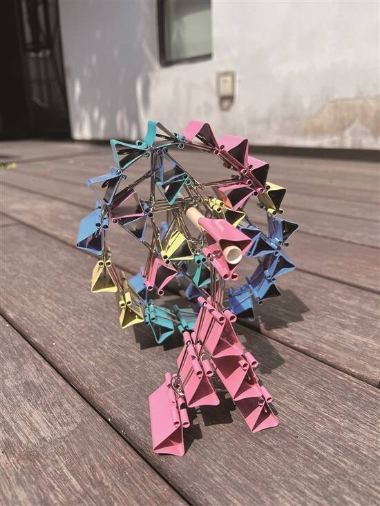 兢兢业业嘅打工人,日日返工放工,难免沉闷。贪玩嘅可乐君今次又想玩下嘢了,抬头望下周围,唔好放过夹文件嘅长尾夹,我哋要将佢哋变成梦寐以求嘅摩天轮,摆住就靓晒,工作心情都唔一样了! 饶禧/文 饶禧、吴雨晨/图 夹仔功能多 长尾夹作为一种办公文具,可以帮我哋夹紧文件,便于整理。其实,除咗夹文件,佢仲有好多隐藏用法噶。譬如用两个夹仔夹住一张纸,就可以变身手机支架,自拍视频彻底解放双手;或者将夹仔合上,然后将相片夹喺长尾部,就可以摆放图片和便利贴啦;仲可以用于整理各种耳机线,用长尾夹夹住耳机线中间部,凌乱的耳机线瞬间变得有条有理。依家可以发挥你嘅想象力,整埋各种新奇装饰品,令办公环境别有一番风味。 变身用巧力 一盒长尾夹内配色多样,有粉色、蓝色、绿色、黄色等。大家可以选择自己中意嘅颜色,搭配制作装饰品。长尾夹亦有唔同size,市面上更常用的是41mm、32mm、25mm。如果用单一颜色制作艺术品,就会精致有个性一啲,如果用上各种颜色缤纷搭配,就可以显得更有创意!大size拼出嘅成品造型更加显眼,不过就唔易操控,要花多啲心思。另外,夹仔多数为钢制,由弹簧片夹体同埋两个较长的尾柄弹簧钢丝卡构成。因为钢制边缘锋利,大家整嘅时候就要特别小心,记得唔好用蛮力,一唔小心就会刮亲自己噶。 变出摩天轮 第一步 ready 准备6个大小相同的长尾夹,颜色搭配可以根据自己的喜好来选择。然后,将夹仔的长尾都卸掉备用。 第二步 制作内框 将已经卸落的尾巴首尾相连卡在最窄处,一个接着一个,最后套成环,内圈框架就整好啦 第三步 安装内圈 将提前卸落的头部,按照框架的顺时针方向重新装完整。记得将夹仔头统一放喺长尾的右边,转起身会更加协调。 第四步 形成双柄 把其中两个夹仔头往上翻,跟住拿出一个新卸的尾巴穿过其中一个掰上去的夹柄,形成双柄腿,再套入新的夹仔头,增加固定性。 第五步 制作外圈 再拿六个同样大小的夹仔,依旧将长尾拆落。在做好的双柄上再穿过一条新腿,把第一圈的夹仔压到里面,再安上新夹。 第六步 支架固定 接着拿出新的夹仔,按照图中组装支架。将底部两对夹仔尾拆掉,从底部中间穿过去,扣住两个头嘅底部,这样会更稳一点。 成品