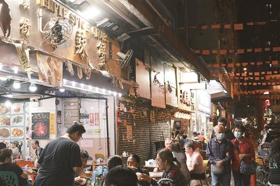 港式饮食同广东口味好贴近,但又有佢自己独有嘅味道,一日三餐都会融入唔同国家、地区嘅美食元素,遍地嘅茶餐厅、贴地街头小食,简单得嚟又会带啲惊喜俾你,令你忍唔住一路行,一路放开肚皮食。 郭玮/文 何崇仪/图 常餐:混搭好玩 大湾区嘅朋友,去到边都离唔开粥粉面饭,一日三餐冇淀粉落肚,等于冇食过正餐。如果早餐实在起唔到身,食个brunch就最啱啦。港式茶餐厅啱晒你心水,一份常餐就会搭配好早、午餐嘅全部食物:醒神饮品有热有冻,热斋啡冻柠茶任君选择;奶油猪搭火腿蛋、菠萝油就配奄列、牛油多仲俾多块香煎鸡扒;主食拣茄牛通粉或者牛肚河粉就啱啱好了,食完一份够饱又唔会滞,开启一日活力满满嘅工作。茶餐厅嘅餐单唔够新鲜?咁你一定要试试五花八门嘅路边摊,店家好多时会将唔同嘅元素大混搭。例如咖喱、冬阴功等汤底同传统竹升面搭档,不变的係依然落葱花,食嘅时候可以根据自己的口味,加啲红醋或者滴两滴辣椒油,简单快捷又绝对俾到你惊喜。 小食:丰富爆肚 唔好睇小小食,试多几样,一样好饱肚噶!港式西多士烤到外脆内热,留边就香脆啲,飞边就可以enjoy面包嘅松软,花生酱擦满多士嘅每寸肌肤,加上香甜柔滑嘅炼奶,香脆软甜嘅口感有晒,虽然热量高,但啖啖都好满足。鱼肉整嘅烧卖,真係几少见噶,咬落弹牙又香口,食一份就足够做餐下午茶啦。蒸制的小食里面,后生仔女最中意糯米糍,外形肥肥白白,软糯香甜,一咬开有爆浆嘅感觉,口味仲好丰富,经典嘅豆沙馅、当季嘅水果夹心,芒果酸酸甜甜,榴莲会食到停唔到口,个胃一下就填满了!如果你仲係心思思想食重口味嘅,香炸臭豆腐就啱晒河车啦。食到饱饱滞滞,都係要饮翻杯冻饮……用一个下午嚟食,时间都係唔够。 人情味:热情贴地 香港街头,人们步履匆匆,生活节奏依然好快。通关之后,嚟香港嘅内地游客多咗,就算普通话讲得唔够流利,香港嘅商家们都会用热情搭够,同你介绍菜品,帮手指路,欢迎大家参观佢哋嘅家园、试食佢哋嘅美食。呢度嘅商家最识抓住商机同宣传机会,食肆嘅阿姨一见到我哋录音影相,即刻煮一碗新鲜热辣嘅面俾我哋影,满面笑容又几啱上镜啵。牛肉店外的伯伯已经係游客镜头里的常客,佢中意一边切牛肉,一边同客人倾计,讲完自己店嘅招牌菜,就会同你介绍最近香港有咩新嘢玩,十足一部行走嘅旅游指南。