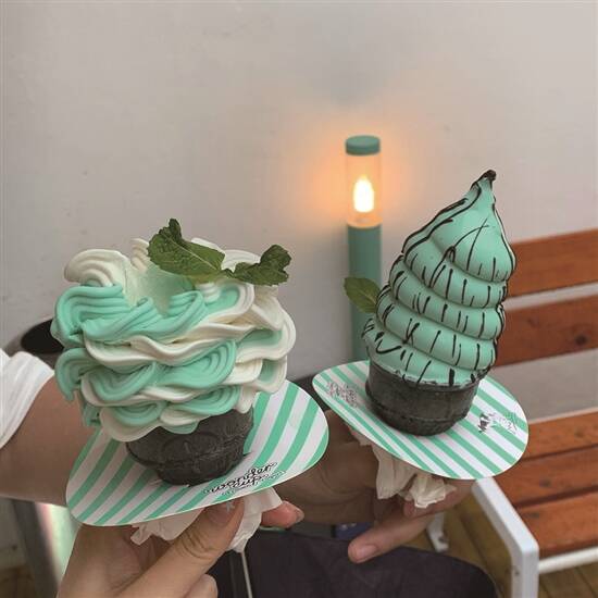 薄荷朱古力口味甜品係今年夏日嘅“顶流”,薄荷绿和黑棕嘅色彩搭配加上清爽嘅味道,颜值高又美味,让大家无法拒绝。广东依家天气仍旧有啲热,迟迟唔发放“入秋体验卡”,不如入到薄荷小屋,感受下“薄荷冷气”从嘴巴传到全身! 黄译萱/文 张子殷/图 黄译萱/模特 薄荷奶油甜心铺 少女花心思 呢间开喺龙洞嘅双层小店少女心爆棚,店内为美式甜心同韩式奶油混搭嘅装修风格,随心选择嘅清新蓝绿和奶油白,啱好同薄荷朱古力甜品好衬,让小店成为咗“薄荷控”嘅出片打卡地。主理人莫莫由细就钟意烘焙,长大后化身甜心厨娘开咗呢间甜品店,并布置成梦想中充满爱嘅小天地。一入门有一面摆满心爱歌手嘅黑胶墙,仲有好多得意公仔和摆件,每一处都透露住莫莫嘅小心思,亦吸引咗越来越多同爱好嘅少男少女过来打卡。店内有一面贴满便签嘅留言版,上面有对甜品嘅点评、有对偶像嘅祝福,通过留言版莫莫可以同客人做无声嘅交流。 甜蜜薄荷宴 推开店铺薄荷绿色嘅门,清凉感扑面而来,不妨坐低点一餐“全薄荷宴”,感受甜蜜嘅“透心凉”。店内最受欢迎嘅当属薄荷巧克力巴斯克,薄荷令朱古力芝士蛋糕拥有慕丝蛋糕般清爽口感;另一款薄荷巧克力卷食一啖超满足,松软嘅朱古力蛋糕夹住薄荷奶油,一粒粒朱古力脆喺口中爆开。薄荷椰子冰就如佢嘅名字一样清爽,冻椰子水加上薄荷奶盖,双重清凉超解暑。滑捋捋又Q弹嘅薄荷奶冻、渐变分层嘅薄荷维也纳拿铁,摆盘精致最适合打卡。呢啲甜品中都加入咗特别调制嘅薄荷糖浆,味道适中“薄荷小白”都可以接受到。主理人莫莫仲会不定期为“薄荷家族”加入新成员,让薄荷套餐越来越丰盛。 店名:满馜·Fulroma 地址:天河区迎龙路216号102铺 营业时间:周一至周五14:30-19:30;周六至周日14:00-20:00 薄荷牙膏劲爽屋 狂啜冻酸奶 呢间有蓝绿色屋顶嘅冰淇淋店,好似漫画中嘅小屋,就算开喺角落头仍然抢嗮fo。佢算係广州第一家做薄荷朱古力口味嘅酸奶冰淇淋店,店内只卖酸奶冰淇淋、生酪酸奶两样嘢。借住得意嘅造型同奇特嘅味道喺网上意外爆红,小店亦从街口小餐车升呢为薄荷绿小屋,分店亦越开越多。店内最特别嘅酸奶冰淇淋又叫冻酸奶(Frozen Yogurt),以酸奶为基底嘅冰淇淋,比起普通冰淇淋更加低脂,减脂期都可以放心食。不过,酸奶冰淇淋唯一嘅缺点就係融得快,一上手就要开启狂啜模式,或者问店员要个碗仔装住慢慢食。 超清凉组合 薄荷味经常被吐槽似牙膏,主理人干脆一不做二不休,用味道超似牙膏嘅意大利罗马薄荷,打造出牙膏薄荷巧克力味酸奶冰淇淋,双重冰凉啱晒“薄荷控”。“原味&薄荷控”口味双拼甜筒更啱“薄荷初哥”,偏酸嘅酸奶中和咗薄荷嘅凉感,冰淇淋造型好似朵花,对住草坪或天空打卡好出片。薄荷朱古力奶昔做成捏捏杯,饮之前捏碎朱古力脆皮,让薄荷奶昔和朱古力更好融合。贴士嚟啦!点一份薄荷朱古力奶昔加酸奶冰淇淋,就可以获得隐藏菜单中嘅薄荷奶昔Plus版!如果你唔钟意薄荷味,又想get清新薄荷绿色冰淇淋,店里面蓝绿色嘅棉花糖味冰淇淋就可以以假乱真,上面仲有得意嘅云朵公仔陪你食。 店名:WonderCup霜冻酸奶 地址:荔湾区吉祥坊2号民居 营业时间:周一至周日10:00-22:30