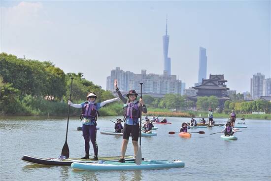 大家有冇喺河边、湖中或者海上,见过有人攞住桨、踩住板施展“水上漂”呢?其实,呢样比冲浪多个桨,比皮划艇企得高嘅运动,叫做水上桨板。超易上手嘅“水上漂”,十分钟就学得识,今期可乐君就带你上桨板,一次过实现运动、打卡、发吽哣、赏美景! 黄译萱/文、模特 张子殷、乐水桨板俱乐部/图 城中“漂”好佗佻 水上桨板源自于“冲浪天堂”——美国夏威夷,英文叫Stand Up Paddle(缩写SUP)即係企住划桨嘅意思。早年间,夏威夷冲浪教练为方便观察、指导学员,选择直立喺冲浪板上移动,呢个动作就逐渐演变成水上桨板运动。比起冲浪、皮划艇等元老级水上运动,水上桨板显得更大众化。水上桨板唔使学好耐,只要识划水、企得稳,就可以享受户外运动的快乐;玩桨板亦唔使周围跑,只要你嘅城市有开放嘅水道、湖泊,就可以随时随地去wet;唔使等浪来,攞上桨,方向、速度、姿势完全由自己掌控;唔使运送船,轻便嘅桨板甚至可以折入背包,陪你翻山越岭去到想挑战嘅水域。 P.S.:佗佻(to4 tiu1)平时会读成“他条”,係用嚟形容从容舒适、心无挂念嘅状态。 桨板花臣待解锁 花臣百变嘅桨板可以满足你多样需求。需要运动减压嘅人,可以一口气划几公里,高效锻炼全身;钟意游山玩水嘅人,可以边划边观赏沿途自然美景;“E人”可以约上三五好友,玩转桨板、肆意欢笑;“I人”晒个日光浴,享受独处时光。想要解锁呢啲玩法,桨板教练陈光钦教路,首先要学识四个基本嘅桨板姿势,关键是掌握平衡,再挑战不同姿势。可乐君先用半跪姿势上板,盘腿坐低握住桨柄划水,或者把桨放平喺身侧,再慢慢瞓低;站姿的难度高一些,以划桨做支撑,双脚慢慢直立。划水时要握住划桨桨把头部,将勺型桨面向前,目视前方伸直手臂,保持好平衡再出发。用前划桨加速向前行,用后划桨停低或者转向,仲有扫桨、拉桨等动作可以帮你实现水上漂。据说当你成为桨板高手,速度模式嘅竞速、交友模式嘅跑板和斗板、平衡模式嘅桨板瑜伽等都可以解锁,甚至可以带宠物一齐上板。 山水背景出片快 无论係在波光粼粼嘅静水,定係在浪花翻涌嘅白水,你都可以踩住桨板“乘风破浪”。自带山水背景嘅桨板出片率百分百,装备上身后更加磢镜,搭配一身最hit嘅溯溪套装或者闪亮嘅运动水着,仲有多巴胺色彩嘅桨板和桨,为你嘅造型添砖加瓦。桨板通常係充气式嘅,旅游型、休闲型、竞速型嘅桨板材质、尺寸都有唔同,多种色彩喺板面碰撞出唔同风格,搭配同色系嘅划桨,多巴胺的画面实在养眼。举起手机或者相机,你就可以把水中游荡嘅鱼仔,岸边嘅绿林秘境,成群起落嘅飞鸟,鳞次栉比嘅城市地标,头上嘅蓝天白云,尽收其中。攞住桨举起双手,转身对镜头比个耶,趴住或半卧喺板上抬头望天,每一张照片都充满生命力,轻松get运动大片。不过,玩桨板要注意安全,包括戴脚绳和眼镜绳、穿救生衣、备打气筒和密封袋等,好好守护自己和财产嘅安全。 鸣谢:乐水桨板俱乐部 地址:海珠区海珠同创汇东1街105号 营业时间:周一至周日 9:00-18:00