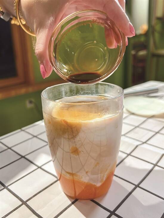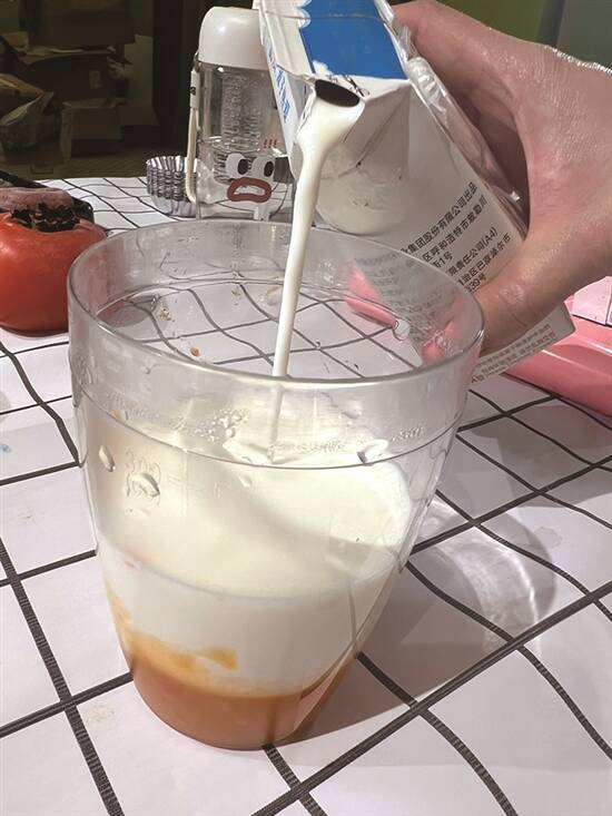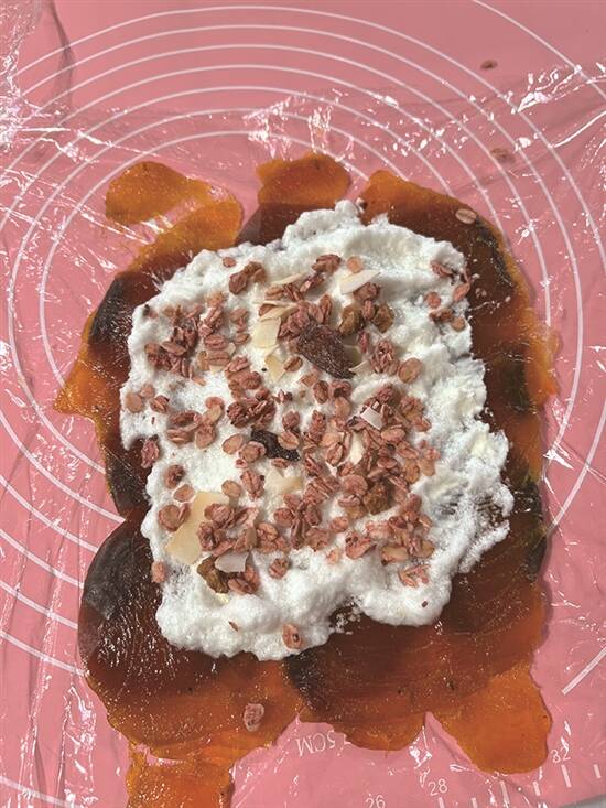 正所谓“霜降柿子红”,当季清甜美味的柿子又上线啦!除咗斋食,入口清甜爆浆的软柿同烟韧流心的柿饼,其实都可以“翻新”另一种好滋味噶。跟住Color君嘅教程,齐齐用柿diy,整翻餐秋日“仪柿感”满满的下午茶啦! 饶禧/图、文 郭玮/模特 柿子雪媚娘 甜品治愈人心,QQ糯糯嘅雪媚娘更係“美食家”们嘅必选之一。柿子版的雪媚娘,用软糯拉丝的外皮包住香甜浓郁的奶油同柿子果肉,咬开后係爆浆流心的果肉,双重搭配甜度升呢。制作时如果想更加快捷,可以选择用预拌粉制作外皮。记得喺造型最后加翻只“原装蒂”,就可以得到一个“一模一样”嘅正版柿啦。 1、加入蛋清同砂糖打发成冰淇凌状奶油,放喺一边备用。将新鲜软柿去皮去蒂,果肉用勺子捣烂。 2、将预拌粉同热水搅拌均匀,滴入可食色素,不断拉扯直至唔易断开的程度,撒上糯米粉。 3、将备好的外皮按大小切开几段,放喺模具上,分别加入奶油、柿子肉,收口包紧,剪去多余的部分。 4、最后将柿子倒扣喺纸托上,表面放上柿子蒂,就可以得到柿子形嘅雪媚娘啦! 成品 好柿咖啡 秋天的第一杯饮品,就从呢杯限定嘅“好柿咖啡”开始。拿铁的醇厚色泽同柿子果肉的橙红交融,就好似一幅秋日油画装入杯内,係唔少颜值控的心头好。制作过程简便,喺日常拿铁嘅基础上,在杯底加多一层柿子肉就完成了。咁样嘅柿子咖啡入口绵密丝滑,既丰富咗口感,又用香甜中和醇苦的咖啡香。 1、将新鲜柿子剥开,放入杯中压出汁液。 2、根据需要加入适量冰块,倒入牛奶8分满。 3、将一份浓缩咖啡液倒入杯中,柿子穿插果签摆喺杯口装饰,一杯简易快捷的“好柿咖啡”就完成啦! 成品 奶酪柿子饼 传统柿饼软糯甜味上头,食落烟韧有嚼头。如果再喺饼中加上奶酪、坚果等夹心,口感会更加丰富。奶酪入口即化,麦片坚果颗粒酥脆,香甜之中又带有微咸的奶香,会中和翻柿子甜度,饱肚又滋味。超快手版小食甜品,快啲跟住尝试下。 1、拿出准备好嘅柿子饼,柿饼去蒂从中间剪开。 2、平铺喺纸上,盖上保鲜膜,用擀面杖擀平。 3、喺柿饼上擦一层奶油,再搭配自己中意嘅配料。 4、用保鲜膜卷起,放入冰箱冷冻一个钟。待柿皮硬后切开几份,奶酪柿子饼就完成啦。 成品