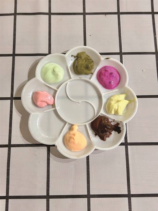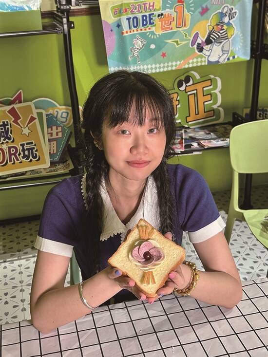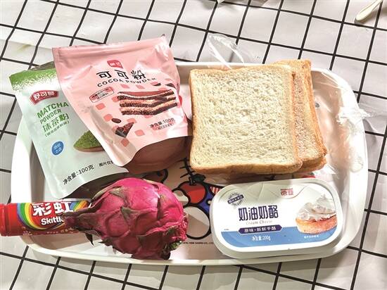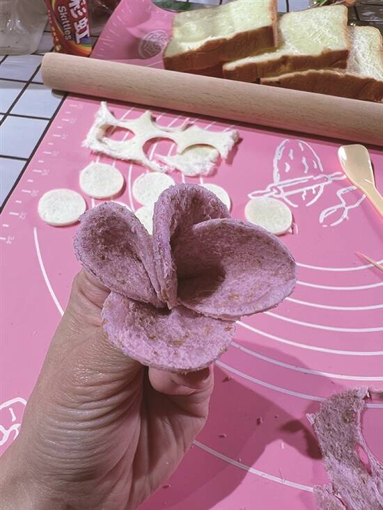 水樽一压,松软嘅吐司变手工纸,匙羹一抹,焦黄嘅方包变成画布……呢啲色彩缤纷又造型奇特嘅吐司甜品,做法简单、制作过程治愈、成品精致。今期Color君带你整出好睇又好食嘅吐司做爱心早餐啦! 黄译萱、郭玮/文、图 郭玮/模特 涂涂有color 想准备个惊喜早餐又唔多会烹饪,不如把方包当做画布,发挥创意画上趣致嘅图案,整一款得意嘅手绘吐司,边个睇到都冧到爆!作画少不了酸甜味道嘅“颜料”,在调配“颜料”时,“天然色素”落得越多,“颜料”就越深,睇住缤纷食落放心。开始作画啦,化身“方包画师”画低屋企嘅一大班公仔,令佢哋排排坐上方包啦。最后,为手绘吐司点缀细节铺垫背景,摆好盘后好似艺术品,每一啖都充满惊喜。 1、调制“天然色素”:用质地似油画颜料嘅希腊酸奶或奶酪,搭配火龙果等新鲜水果,或者可可粉、抹茶粉等调味粉,用匙羹混合佢哋进行调色。 2、抹出公仔轮廓:用匙羹喺吐司上刮出色块确认位置,前端轻轻放一堆,后端再用力刮出尾,用呢个方法继续抹出所有公仔嘅轮廓。 3、画出细节特征:用巧克力色、乳白色补充公仔嘅面部特征、五官表情,仲可以用匙羹大面积铺色画出草原、花园等美丽风景。 成品 片片变3D 一片片嘅方包,除咗可以做“画布”彩绘图案之外,仲可以变成“手工纸”,加少少创意,令佢变得立体起身。用压平的面包片当“手工纸”,更方便整造型,切出嚟嘅面包边可以留住做后期装饰。用樽盖压出圆形面包片花瓣,层层叠加面包片,面包花就会更加有层次啦。装扮立体花花面包时,花朵周围可以用面包边修剪出来的流苏、小叶子做装饰,再用一粒朱古力豆做花蕊,立体嘅花花面包就做好啦。如果中意脆口吐司,可以将成份作品送入烤箱,烘烤之后朱古力花蕊会变成流心,微焦嘅面包片卜卜脆好过瘾。 1、准备手工纸:用擀面杖将飞边面包片碌平压实。 2、压出圆形片:用洗干净嘅矿泉水樽盖印出圆形嘅面包片花瓣。 3、制作面包花:捏实花瓣底部再两两合并,围绕成型嘅小花叠加圆面包片,就可以变成一朵面包小花。喺另一块面包上挖窿,将制作好嘅花朵插入,仲可以用面包边装饰立体面包花。 成品