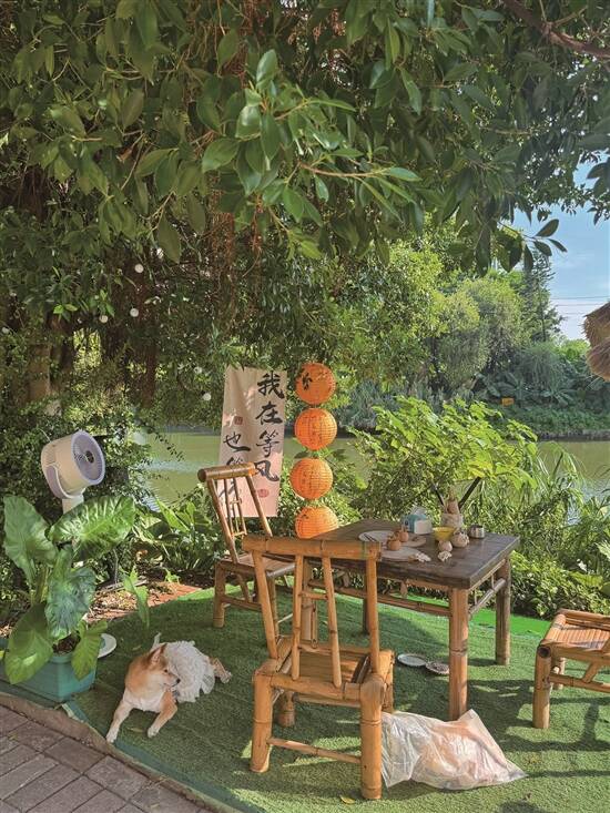 最近《花儿与少年6》《现在就出发2》等旅游综艺热播,唔少朋友仔都睇到心喐喐,想嚟一场说走就走的旅程。最近,可乐君喺广州发现咗两间如世外桃源般嘅小店,唔使出远门,我哋就可以舒舒服服叹“氧吧”啦! 饶禧/文 黄译萱/图 饶禧/模特 河边的天然氧吧 江边放空 喺海珠湖临河边上,有一间静谧嘅茶咖店。呢间新开嘅天然氧吧“沐村”以黄色秋叶为主题,茅草屋顶同门前嘅绿野树丛相搭,好似隐世嘅“世外桃源”,好啱倾计hea下放松心情。入秋时节,沿江而坐,阵阵微风吹来,夹杂着店内嘅香浓茶咖味。主理人闻闻话阳光好时,自己都会舒服到瞓着,到了傍晚,太阳洒下湖面,眼前一片波光粼粼,运气好仲会遇上“白鹭点水”。水边绿荫加上特制嘅竹制桌椅,每一个设计同环境相搭,心情都会变得更加舒适,摆翻两个靓pose轻松出片。 “陶”冶身心 中意做陶艺嘅主理人闻闻将陶艺带到嚟“沐村”,陶艺需要静心,喺呢间足够静嘅“氧吧”中做陶艺,成个人都会变得十分专注。最为特别的是做陶艺并冇规定体验时间,大家可以尽情发挥创意小宇宙,捏出属于自己的作品。如果你係“陶艺初哥”,闻闻会在旁边一步步教学。喺餐品方面,店铺出品简简单单,与自然契合。“柚子蜂蜜气泡水”,一啖入口透心爽;“沐村南非红茶拿铁”,不含咖啡因,红茶味更加浓郁;配上新鲜出炉嘅乳酪杏仁吐司、黄油牛角包等小西点,香味浓郁,搭配靓景入口更滋味。 沐村咖啡&茶社 地址:广州市海珠区南洲路44号一楼 营业时间:周一至周日12:30-18:30 街巷深处绿植屋 绿植“肆意生长” 人来人往嘅客村背后,恬静嘅“山下植屋”被绿意同阳光环绕,错落有致嘅绿植、逼真嘅编织“蘑菇”散落在店里的角落,令人仿佛走进了森林。身为景观设计师嘅老板,喺布置店内时主打“随心”,佢希望可以放低一板一眼嘅设计,让植物“随心”生长,做自己的设计师。大家嚟到呢个“森林”,快乐吸氧之余,仲可以逛逛旁边嘅杂货首饰区:有各种陶艺、古着首饰、特调香水等等。店内几只猫猫贯彻店铺“随心”宗旨,经常好佗佻咁趴喺凳上,睇心情营业。有书、有猫、有养眼嘅绿植,大家可以喺呢度静静享受一下独处时光。 养生茶“放松酒” 店铺推崇绿色健康饮食,设计餐品时尽量保持原材料嘅原汁原味。名为“海浪”嘅蓝色饮品,用原生椰子水的甜味,提前浸好嘅蝶豆花,加上无色素手打奶泡,令饮品好睇又健康。养生茶係店内嘅招牌,薏仁茶、桑葚茶、舒肝茶等等,总有一款啱你饮。店内仲会搭配一两款蛋糕,每日新鲜运到嘅巴斯克蛋糕,食落绵密,浓浓嘅芝士味甜而不腻。呢度白天叹茶,晚上会摇身一边,化身让人松弛嘅小酒吧,每周五、六晚,店家会请驻唱歌手过来唱歌,大家兴致来了都可以上去唱翻两首噶。 山下植屋Dawn of mountain 地址:广州市海珠区新港中路354号 营业时间:周一至周五11:00-次日1:30 周六至周日11:00-次日2:00