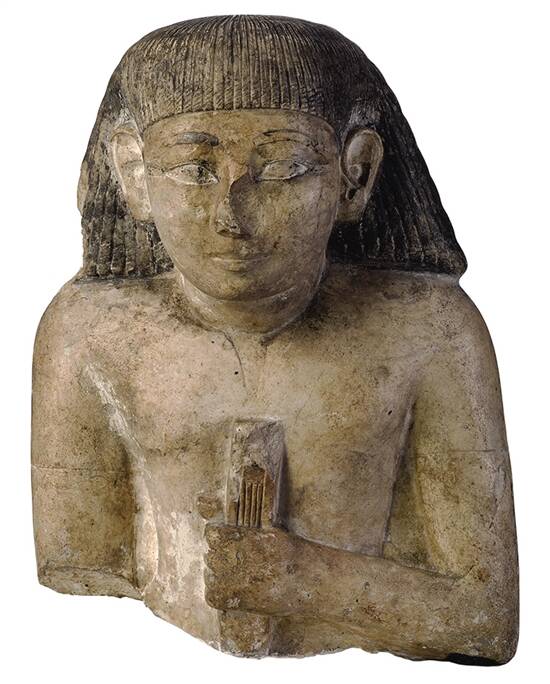 持书写工具的男性雕像上身