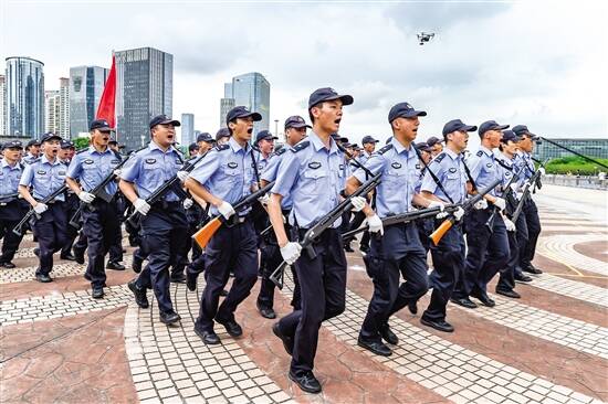 新快报讯 记者彭程 通讯员深公宣报道 8月6日,新快报记者从广东省公安厅获悉,为坚决打好打赢新中国成立70周年大庆安保维稳攻坚仗,进一步凝聚警心、鼓舞士气,激发斗志、砥砺担当、练兵备战,全力维护国家政治安全和社会治安大局稳定,根据广东省公安厅统一部署,深圳市公安机关决定开展广东公安夏季大练兵“深圳亮剑”行动。6日上午10时30分,深圳公安1.2万名警力快速集结,在深圳宝安海滨广场举行声势浩大的广东公安夏季大练兵“深圳亮剑”行动誓师大会。炎炎烈日下,深圳公安1.2万名警力整齐集结,装备精良,50辆装甲车,200辆冲锋车,1200台铁骑摩托车,5架直升机,8艘船艇、2辆水陆两栖车以及其他装备分列周围,海陆空齐上阵,气势磅礴,场面震撼。