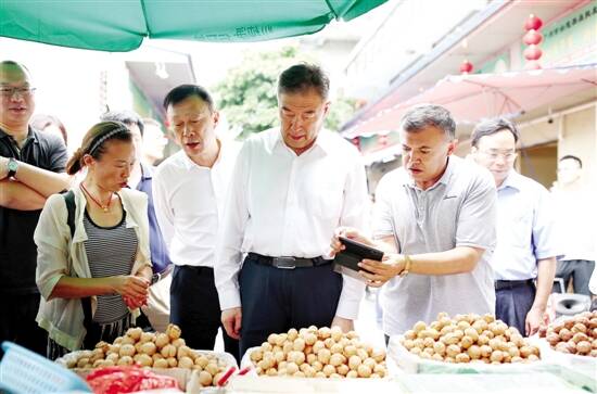 上午行程的第二站,武洪斌一行人来到广州最具规模的果菜批发市场——广州江南市场,这里是中国乃至东南亚地区最大的果菜集散地之一 ,多年来蔬菜和水果的交易量一直排在全国首位。“我们这里采取的是管理商户的模式,即我们提供档口和服务、管理,商户自产自销。多年来,我们还一直在引导商户自己种植农产品进行销售,所以我们这里的很多商户都有自己的种植基地。”广州江南市场的相关工作人员介绍说,这里的商户并不是简单的菜贩、果贩,80%的商户都在搞种植产业的同时,兼顾销售环节。