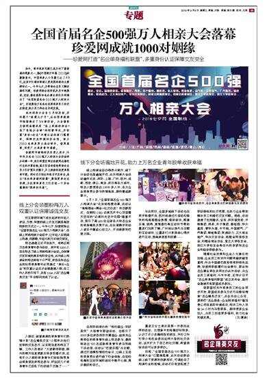 目前,“全国首届名企500强万人相亲大会”已圆满落幕,此次活动联动线上线下资源的创新形式,可谓走在了相亲行业的前端,活动不仅有效拓宽了职场群体的社交范围,也助力企业帮助解决员工的婚恋交友问题。据悉,活动邀请了包括腾讯、宝洁、深圳国资委、中粮集团、网易、苏宁集团、碧桂园、华大基因、普华永道、中节能、中国燃气、广汽集团、绿地集团、软通动力、正大商业地产、华为交友协会、前橙会阿里校友会、初橙会商业创业、复旦大学校友会、浙江大学校友会等在内的多家知名企业和组织积极参与。