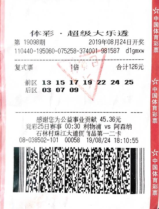记者看到,温先生选择的号码是“13、15、17、19、22、24、25+03、07、09”,结果当期摇出的开奖号码为“13、15、17、19、22+03、04”,虽因一个后区号码错失千万头奖,却为他带来了2注单注奖金为56万多元的二等奖。温先生说,错过头奖并不觉得遗憾,毕竟是概率游戏,倒是后来知道追加能多中80%的奖金,才后悔没有追加。