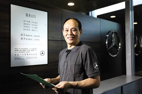 问及夏师傅《服务公约》发布以后给他工作带来的变化,夏师傅给记者展示了一张维修确认单,右上角《服务公约》的异常显眼,夏师傅说:“《服务公约》就像是一面镜子,让我们做事时,都会不自然地照一照,让我们从上到下,从里到外,都确保客户的每一处消费都清清爽爽,明明白白。”服务公约明确写明,奔驰经销商所售的所有配件,来源和渠道都必须清晰公示,“绝不使用假件、以次充好”,最大化地保障客户权益。