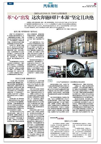 金融服务,按揭、精品装饰、保险、上牌、延保增值服务,汽车行业衍生的产品链,在不知不觉中成为了捆绑销售、强制销售的打包产品。5月23日,奔驰销售公司、金融公司及其全国授权经销商联合推出了《服务公约》,距今已过百天。是坐而论道还是身体力行?革“心”出发的奔驰带着一份开行业风气之先的“奔驰标准”,回归产品和服务的“本源”,最终又对汽车行业影响几何?■新快报记者 付花 张磊/文 龚吉林/图
