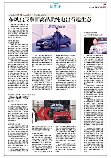 作为“传统造车新势力”,东风启辰总经理马磊表示:“启辰D60EV的正式上市,开启了东风启辰电动车和燃油车双线并举的新格局,年内还将推出两款新能源车型,逐步形成完善的电动车产品布局。”
