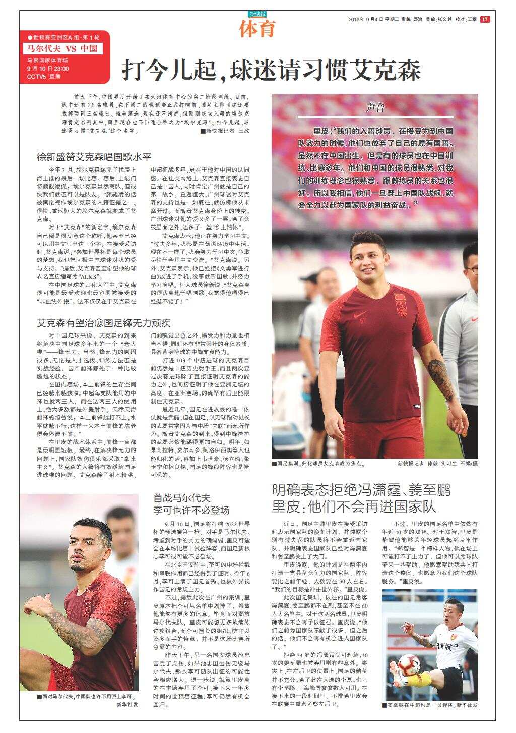 明确表态拒绝冯潇霆、姜至鹏 里皮:他们不会再进国家队