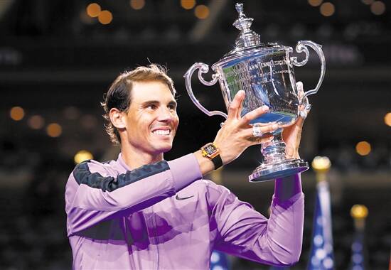 ■纳达尔举起美网冠军奖杯。新华社发