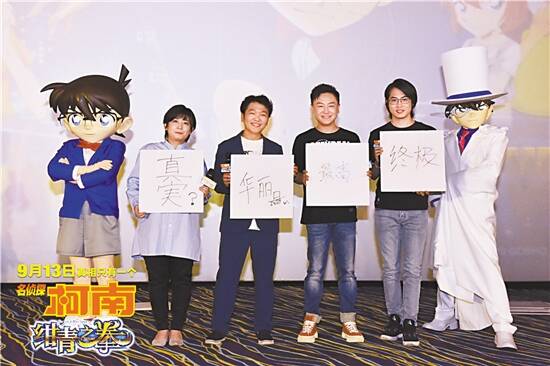 作为柯南剧场版的第一位女性导演,导演永冈智佳手写中文“真相”一词,她坦言这一次所有角色都有谎言,希望大家可以去看一看真相在哪里。日本声优山口胜平亲笔写下“华丽”,因为他认为基德的每一次亮相都无比华丽,正如这部剧场版宏大震撼的动作场景一样。中文声优阿杰表示这是柯南第一次在剧场版走出日本、在海外展开探案历程,希望这次在内地上映可以有新的票房成绩。