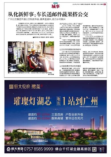 当您搭乘公交车时,发现车上有大量新鲜萝卜、白菜、水果等蔬果,请不要惊讶,原来,广州公交集团作为国有运输企业,在新形势下持续深化企业改革创新,紧跟政府乡村振兴的步伐,充分开展好“镇镇通公交”“四好农村路小型化预约客运”“公交+物流、蔬果”等民生工程,使随车农产品有了自己的“座位”;此外,从化也出现了“车长送邮件”的新鲜事……通过试运行,9月19日,广州市从化区首条公交物流专线、蔬果直通车正式开通,当地村民直呼“方便”。■新快报记者 黎秋玲 通讯员 杨智伟