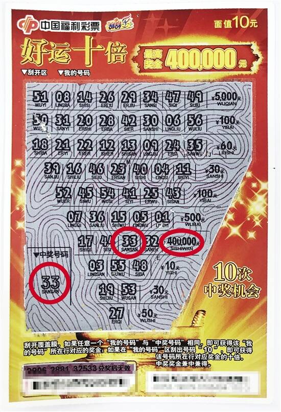 新快报讯 记者陆妍思 通讯员巫倩敏报道 早晨的风泛起了秋天的气息,佛山彩市也进入了丰收之季。继9月5日双色球第19104期开奖佛山中出1注双色球一等奖、4注二等奖后,近日,佛山市福彩中心兑奖处又迎来了一位神清气爽的大奖得主,他兴奋地把中奖彩票递给工作人员。原来,他中得刮刮乐“好运十倍”的头奖,彩票面值10元,奖金高达40万。据统计,这是佛山市今年以来中出的第5个“好运十倍”头奖,同时也是今年的第17个刮刮乐头奖,可喜可贺!顺手挑出“好运十倍”头奖