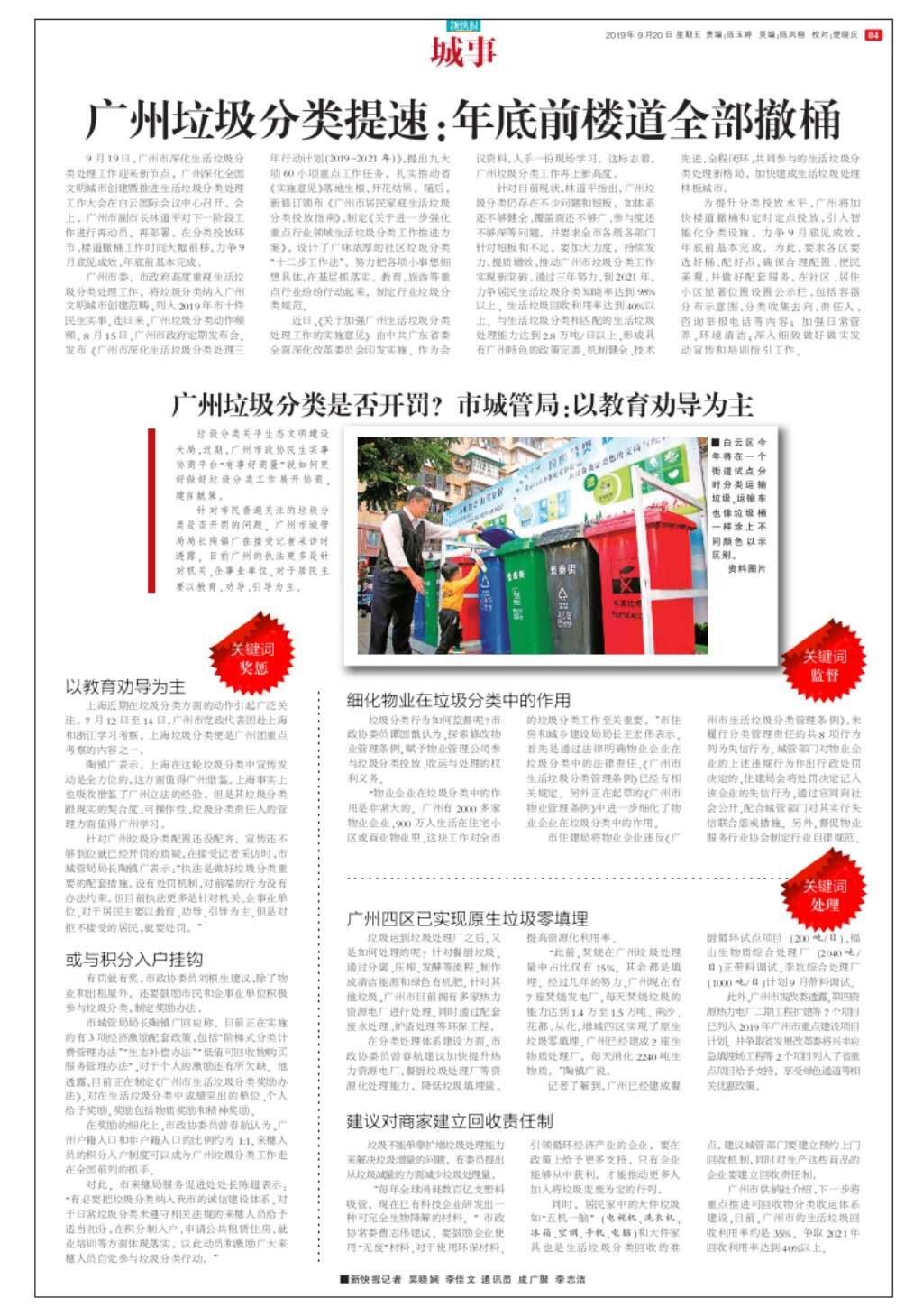 广州垃圾分类是否开罚?市城管局:以教育劝导为主