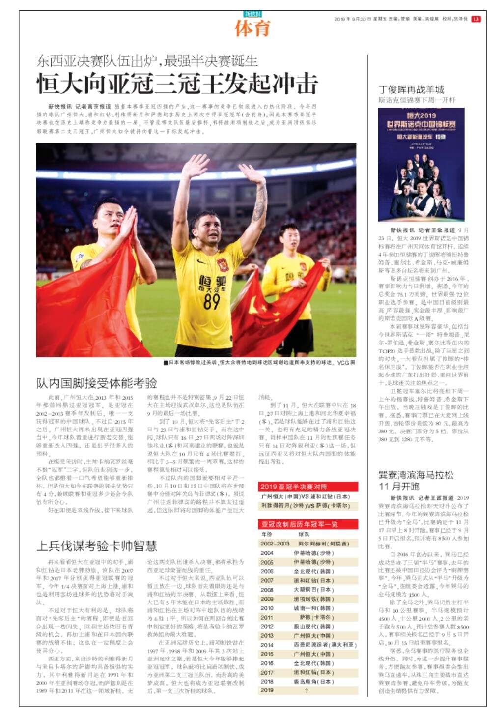 恒大向亚冠三冠王发起冲击