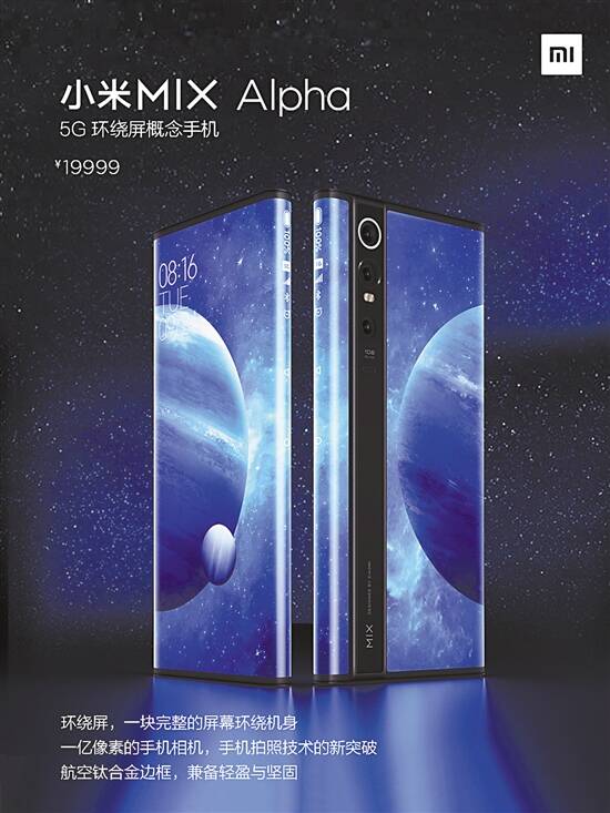 同日发布的小米MIX Alpha,被称为是一款“不属于2019年,这是来自2025年的手机”。