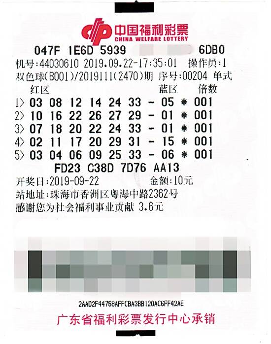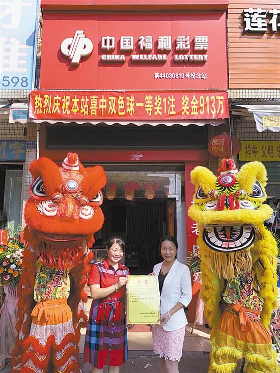 新快报讯 记者陆妍思 通讯员欧伟杰报道 9月22日第19111期双色球开奖中,珠海市香洲区粤海中路2362号的44030610投注站中出1注913万元头奖,中奖彩票是一张10元5注机选单式票。近日,中奖彩民刘女士(化名)在家人的陪同下来到珠海市福彩中心兑取大奖。原来她生活在中山,这次是一家人到珠海逛街时购彩中奖,她兑奖时兴奋地说:“珠海真是我的福地!”据了解,这已经是2019年珠海福彩的第6个双色球一等奖。到投注站借用厕所顺便购彩