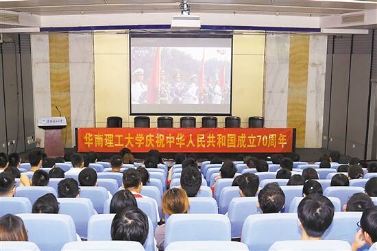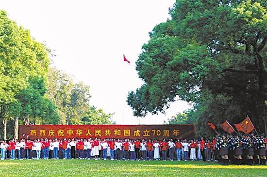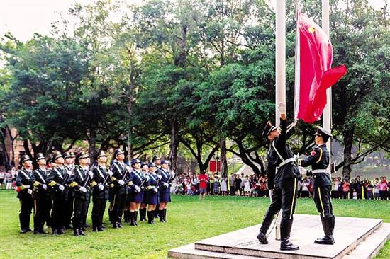 新快报讯 记者王娟 通讯员王凯蕾 华轩 曾琳 肖建喜报道 为庆祝中华人民共和国成立70周年,10月1日上午,位于广东的中山大学、华南理工大学等高校师生,迎着清晨的暖阳,举行了隆重的升旗仪式,还共同观看了激动人心的国庆阅兵式。当天,中山大学在广州校区南校园中区草坪举行升国旗仪式,师生齐唱国歌,在中华人民共和国成立70周年之际,为祖国献上诚挚祝福。该校学生纷纷表示,将发奋努力,不负韶华,让奋斗成为青春最亮丽的底色,为实现民族伟大复兴的中国梦注入青春力量。