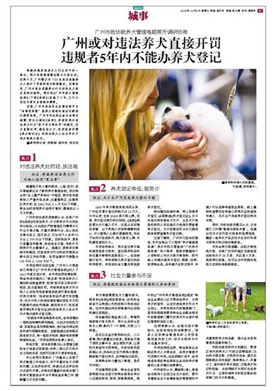 回应:考虑将违法养犬行为纳入信用“黑名单”狗越来越多地成为人们生活中的一部分,狗只的管理难题也随之凸显出来。近两个月,广州警方对730名违法违规养犬人进行了罚款和责令限期整改。但事实是,广州对违法违规养犬行为的执法力度还是相对温和。现行的《广州市养犬管理条例》(下称《条例》)实施了十年,已不太适应目前社会管理的需要。
