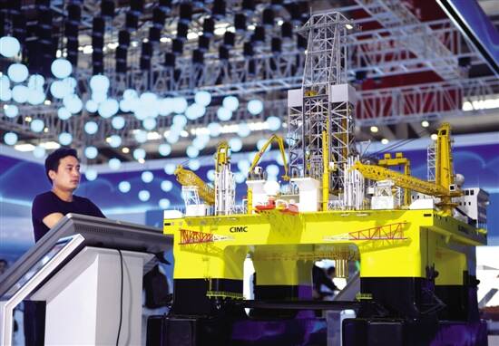 ■10月15日,与会者参观“蓝鲸1号”钻井平台模型。新华社发