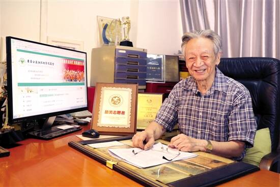 老先生已经80岁高龄,神采奕奕地坐在堆满文件的办公桌前。正午阳光从他身后的玻璃窗照进来,染在白发上,留在微偻的背上。