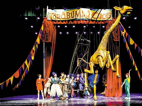 新快报讯 记者徐绍娜报道 “酷狗酷艺术·优秀剧目展演”引入的大型木偶马戏《塔拉蹦吧》中文版近日在广州天河区文化艺术中心大剧院上演。该剧目由中国和波兰联合制作,将马戏和木偶进行结合,融入了马戏动物表演和木偶剧情的元素,极具创造力和互动性。演出过程中,表演者邀请小朋友上台,参与到帮助“蹦吧”寻找后腿并安装等环节,并由长颈鹿带领大家一起背诵唐诗。在一小时的演出中,会唱歌的长颈鹿、会吃鱼叉的狮子以及可以起飞的大象等,带现场观众穿梭在奇幻的童话世界里,赢得阵阵掌声。