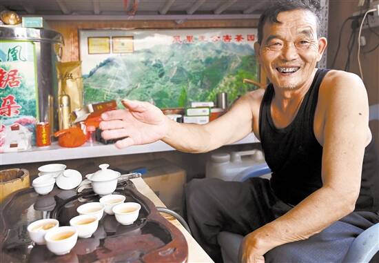 ■66岁的林国营将茶园交给儿子,自己偶尔帮帮忙,大部分时间喝喝茶,生活十分惬意。