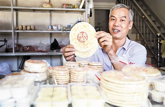 ■54岁的陈良书做的潮州传统饼食,饼皮薄馅足,很受欢迎。