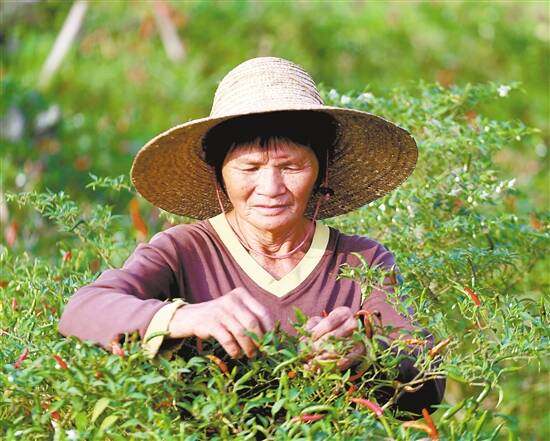 ■南江口镇河塱村,村民陈伟枝在开心地摘辣椒。