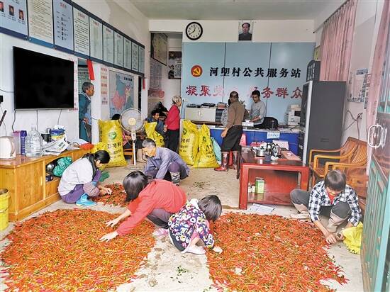 ■南江口镇河塱村,大家忙着分拣辣椒,为出售作准备。