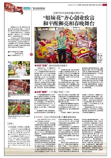想做股东可以入股,想种花可以租温室大棚,或者出资自建,一个花卉种植大棚,何以让贫困户和村民纷纷动了心?答案在河源市和平县,一对姐妹花携手建了一座年收入20万元的花棚,找到了一条脱贫致富之路。与此同时,来自和平县贫困村的醒狮不仅亮相春晚舞台,其订单也是源源不断、接到手软。无论是花卉种植产业,还是醒狮文化产业,都是和平高质量发展扶贫产业的缩影,在探索创新中逐渐形成了脱贫攻坚“和平模式”。