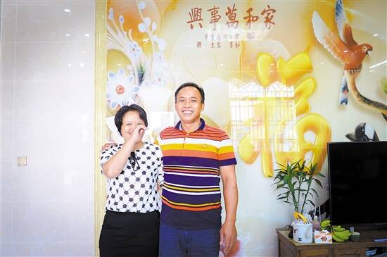 ■脱贫致富搬入新房的张明华夫妇喜笑颜开。